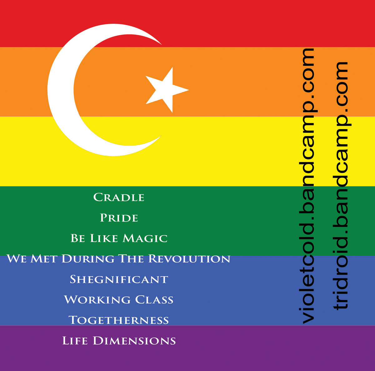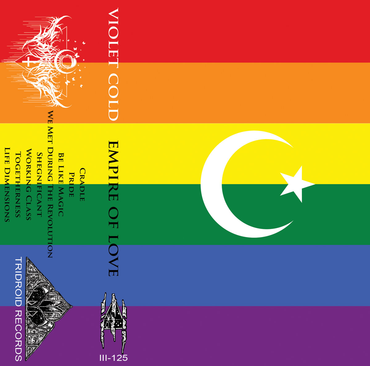 Purple cassette, rainbow sticker label, 3 panel j-card
